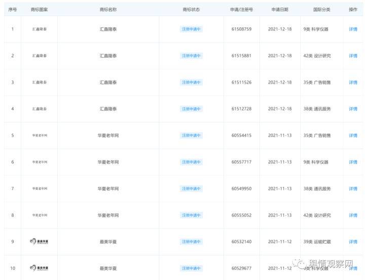 据企查查显示,黑龙江省汇鑫隆泰科技有限公司法人为高健,注册资本1000万元,2021年6月25日注册。值得注意的是,该公司注册商标包括汇鑫隆泰、华夏老年网、最美华夏。