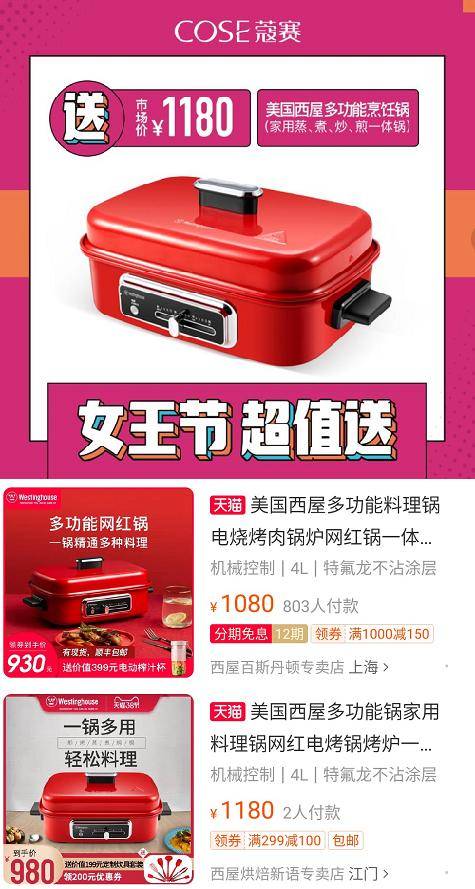 但实际上,有精明的消费者算了一笔账:现在西屋锅在天猫售930元,水光淘宝价80一盒,六盒水光加西屋天猫价格是:80×6+930=1410元。如果消费者比较理性,就不会参与活动花2400元得六盒水光和一个西屋锅,而是花1410元直接购买六盒水光和一个西屋锅。