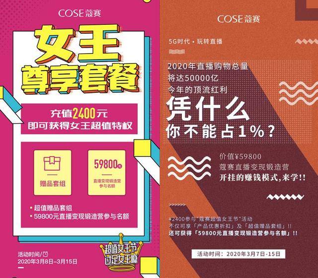 为了说服大家参与活动,蔻赛公司董事长谢佳紧跟市场节奏,推出最后一道杀手锏:消费2400元除了送锅,还额外赠送59800元的免费直播课程。