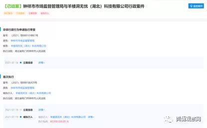 据企查查显示,2021年7月16日,据案号(2021)鄂0881行审61号显示,羊楼洞无忧(湖北)科技有限公司被湖北省荆门市钟祥市人民法院非诉行政执行审查。