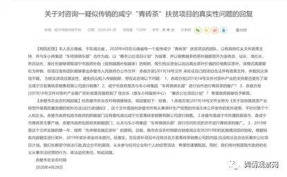 此外,2020年4月28日,曾有消费者在咸宁网络问政平台咨询过疑似传销的咸宁“青砖茶”扶贫项目的真实性问题的回复。