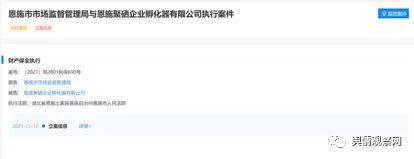 企查查立案信息显示,恩施聚硒企业孵化器有限公司(简称:恩施聚硒)被湖北省恩施土家族苗族自治州恩施市人民法院财产保全执行。