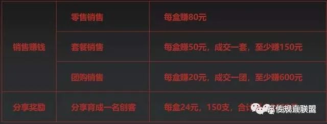 为什么有这么多人在鼓吹产品的好呢,因为有一套吸引人的奖励制度,利润客观,目前政策主要有经销商、创客、团购、套餐,经销商复购复购每盒返8元;直推经销商复购返13元/盒;间推经销商复购返5元/盒;年度个人进货总销量返3元/盒