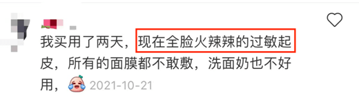 不过,第一次使用后,刘女士就出现脸部刺痛、皮肤泛红的症状,她以为是初次使用的正常现象,便坚持用了几天。“几天后,我的脸开始过敏,大面积起痘、起红疙瘩,疼痛难忍,非常难受。”刘女士称,“我用过这么多护肤品从来没有出现过这种情况。”