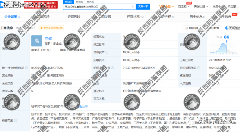 据天眼查显示,黑龙江省汇鑫隆泰科技有限公司成立于2021年6月25日,位于哈尔滨市香坊区公滨路572号2栋1层,注册与实缴资本均是1000万,法人代表高健任执行董事兼总经理,持股88%。