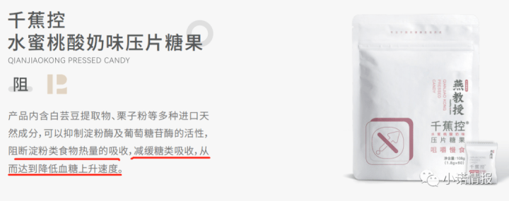 “水蜜桃酸奶味压片糖果”标注“减缓糖类吸收,从而达到降低血糖上升速度”。