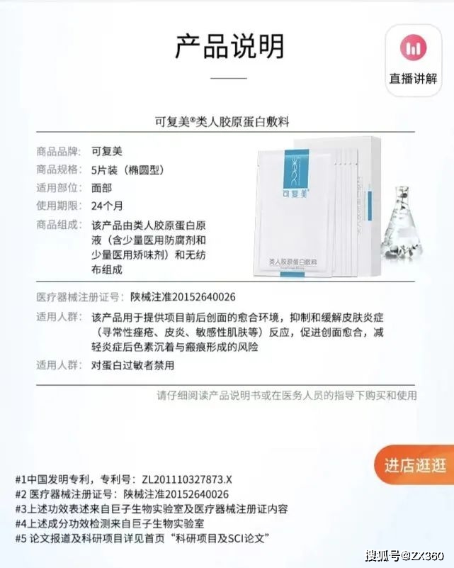 可复美(Comfy)是巨子生物于2011年创立的品牌,主要经营用于医美项目前后的类人胶原蛋白修复敷料,目前已成为巨子生物的旗舰品牌。品牌主推的类人胶原蛋白敷料在其天猫旗舰店的月销量在4万以上,且品牌声称该产品拥有医疗器械注册证号。