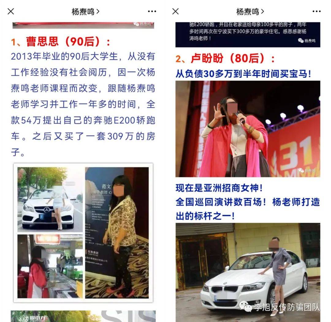 ▲在一个名为“杨焘鸣”的公众号中,我们看到诸多学员的“成功案例”