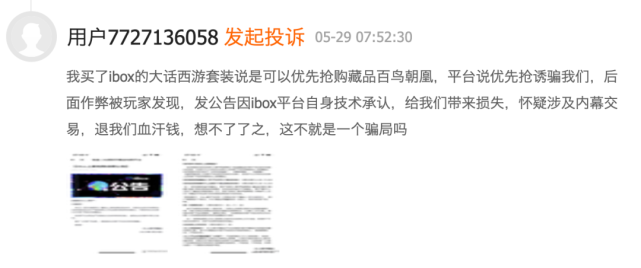 此外,有不少用户在黑猫投诉平台中发文称,遭到iBox平台诱导抢购了数字藏品,但相关藏品无法转售,或价格波动较大产生损失,欺骗消费者等。另有用户表示,平台私扣管理费、提现难等情况,要求退款。