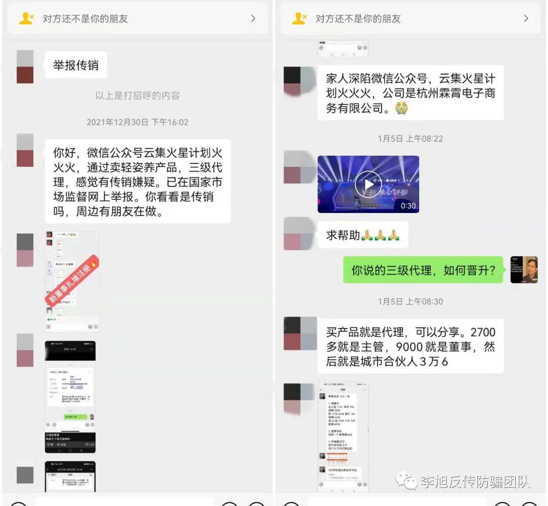 近日,李旭反传防骗团队接到网友爆料,目前公司改成杭州霖霄电子商务有限公司依旧在运作。公众号为“火星计划火火火”。