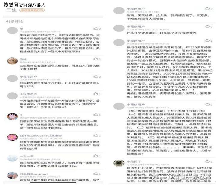 央视报道称,这家公司产品价格虚高,超范围经营、疗效涉嫌虚假。并宣称其有三个特征。第一你需要交入门费,第二个你需要发展下线,第三个你需要根据下线的人数及他们的经营业绩来决定你有多大的回报,这三条听起来就像是传销的特征。