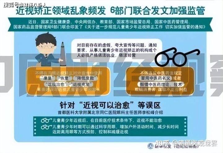 2019年4月,国家卫健委等6部门联合发布的《关于进一步规范儿童青少年近视矫正工作切实加强监管的通知》要求,从事儿童青少年近视矫正的机构或个人必须严格依法执业、依法经营,不得在开展近视矫正对外宣传中使用“康复”、“恢复”、“降低度数”、“近视治愈”、“近视克星”等表述误导近视儿童青少年和家长;不得违反中医药法规定冒用中医药名义或者假借中医药理论、技术欺骗消费者,谋取不正当利益。