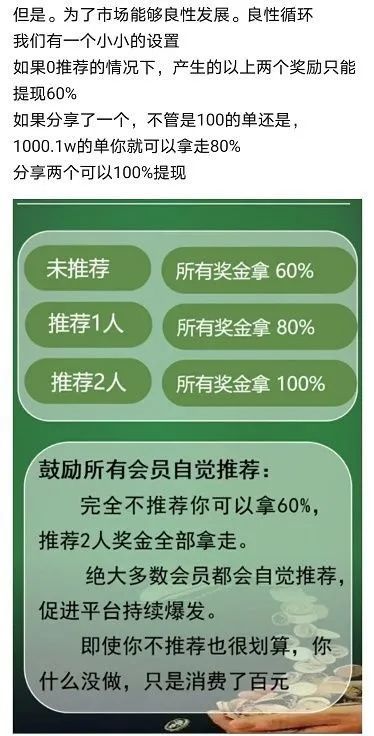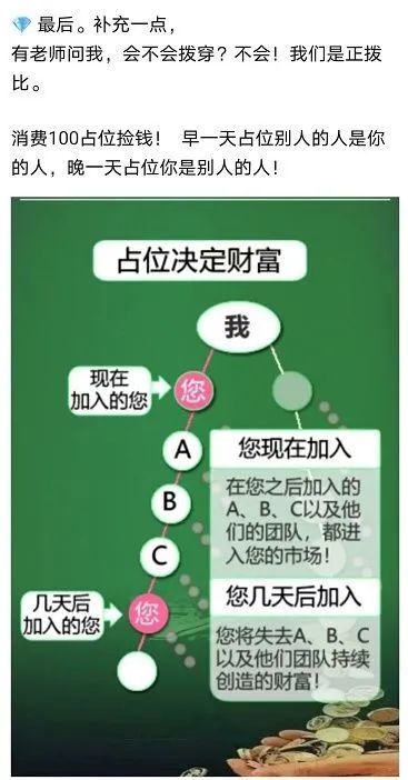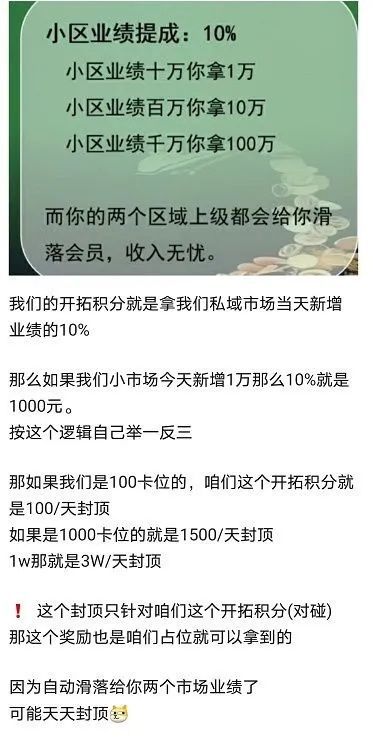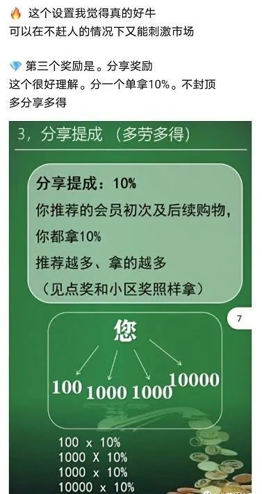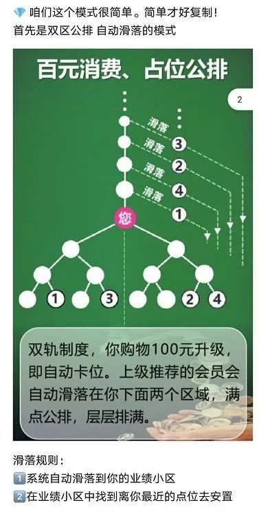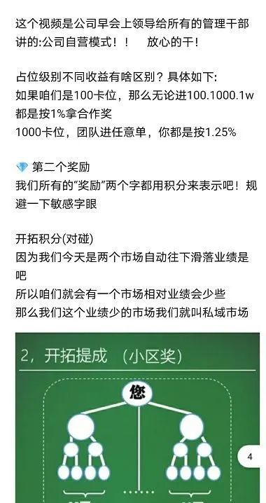 卫康生物宣传的百元新零售,100元就是门槛费;AB双轨制是拉下线;对碰见点奖就是团队计酬。这完全符合传销特征,虽然卫康生物宣传自己是拥有“直销牌照”的企业,直销牌照也不是免死金牌,更不是“犯罪许可”。