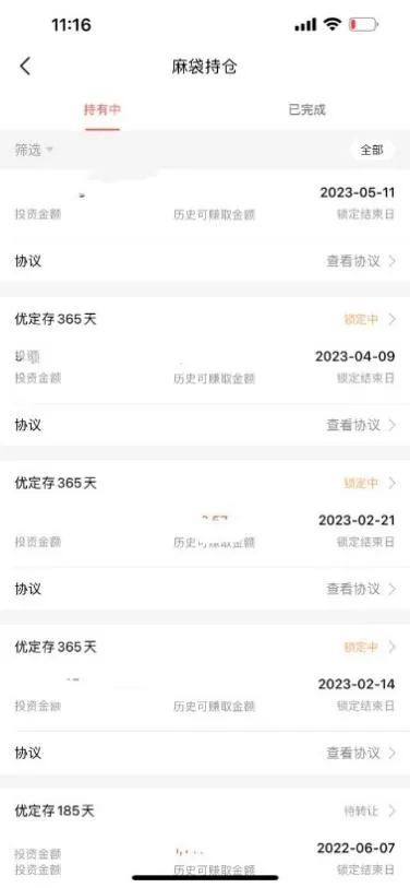 郑红表示,他目前在麻袋财富共有7笔投资,有2笔已于6月7日及19日到期,但持仓页面显示,到期的投资已转为“待转让”状态,均无法提取。上述投资产品中,一年期的利率为8.5%,半年期的为7.5%。