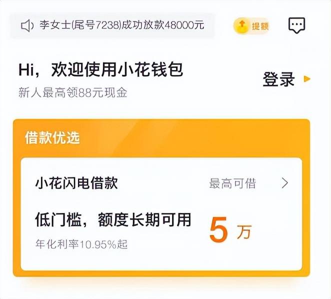 小花钱包贷款页面显示,“小花闪电借款”最高可借5万元,年化利率10.95%起。不过,有用户表示,今年6月,其在小花钱包借款8000元,分12期等额还款,每期需还756.44元,实际年化利率为24%,远高于其宣传的最低利率。