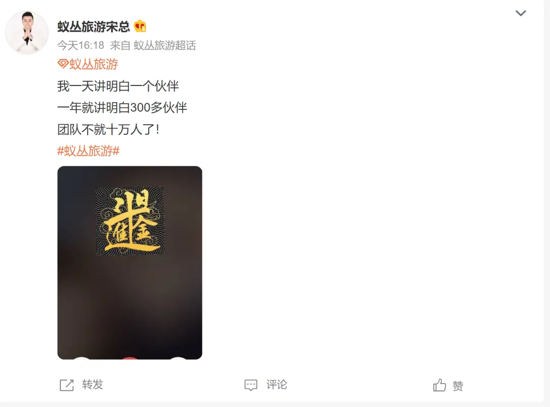 一名蚁丛旅游高管微博放出“豪言”