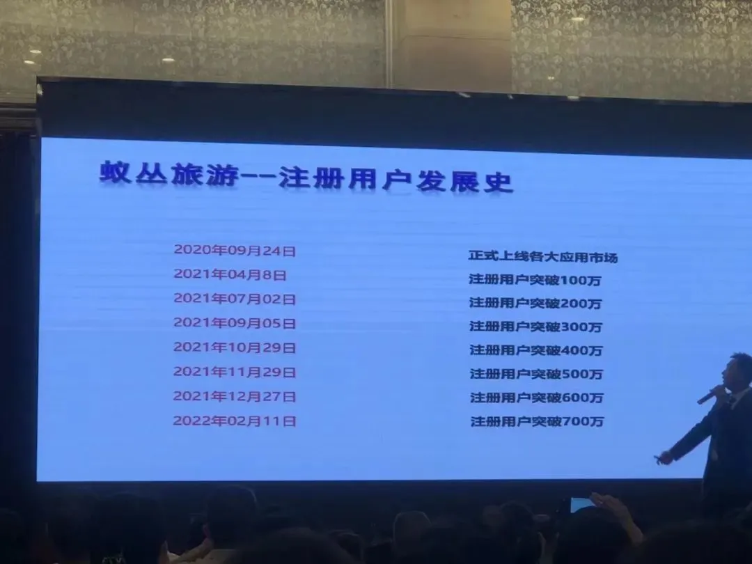 再根据该公司官方公众号的说法是:这次旅游是为了“庆祝蚁丛旅游用户人数突破千万”。
