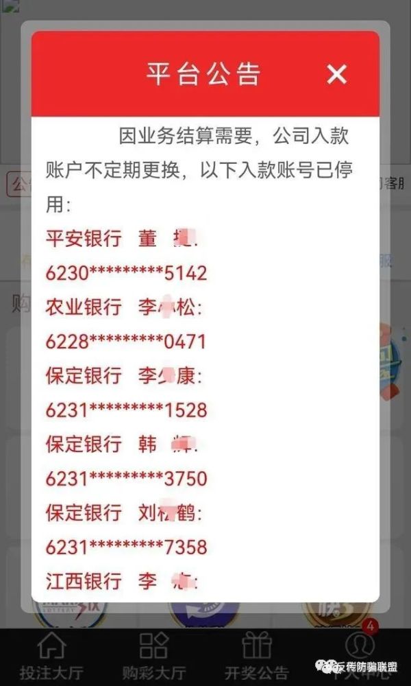 每隔一段时间,盈丰彩票都会更换一批收款账号