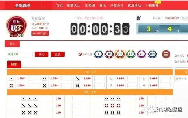 完成充值后,用户就能参与下注了。在“盈丰彩票”的购彩大厅里,共有20多种项目,除了少量六合彩意外,全部是“快3”游戏。