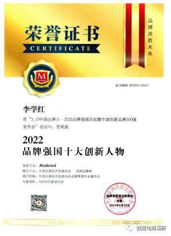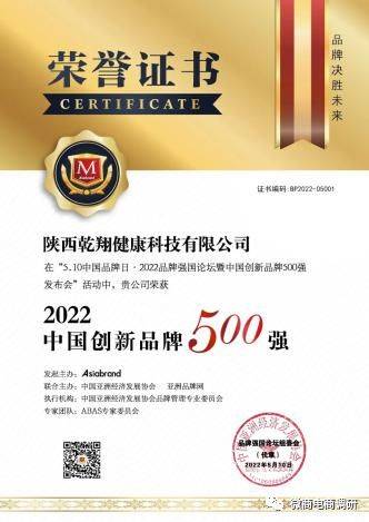 根据乾翔健康公众号发布的消息,乾翔健康集团不仅荣登“2022中国创新品牌500强”榜单,其董事长李学红还荣获“2022品牌强国十大创新人物”。