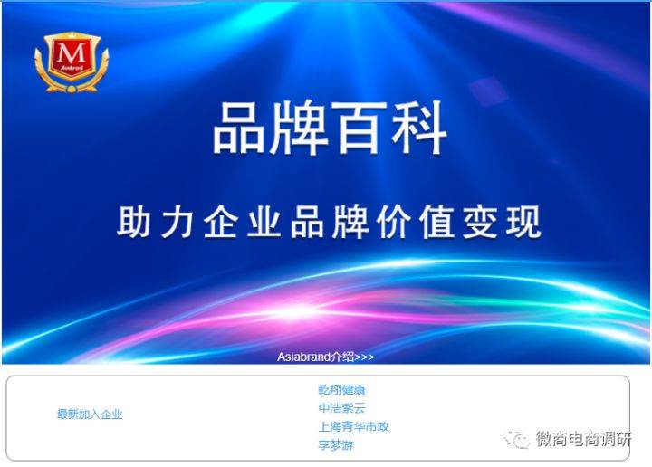 在一个名为“Asiabrand品牌榜”的微信公众号内,微商电商调研了解到,Asiabrand(亚洲品牌集团)于2005年在香港成立,是亚洲专业品牌价值系统化服务商。而该微信公众号的认证主体亚洲星云品牌管理(北京)有限公司。企查查信息显示,亚洲星云品牌管理(北京)有限公司成立于2005年01月28日,经营范围包括品牌管理;品牌策划;价格评估等。“Asiabrand品牌榜”公众号相关信息显示,乾翔健康是“最新加入企业”。