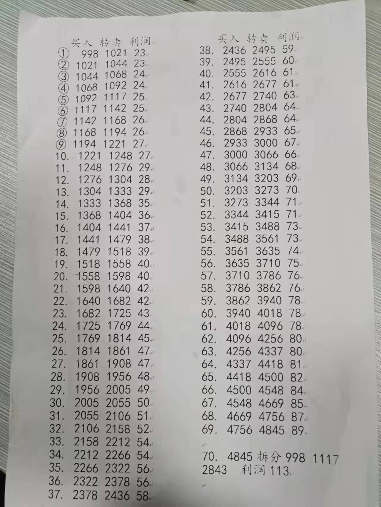 第一批会员把买到的“单”再卖给第二批会员,售价1021元。第二批会员买到之后,再卖给第三批会员,售价1044……以此类推,层层加价,最后卖到4845元!然后这个4845元,拆分成三个“单”,分别是998元、1117元和2843元。具体如下图: