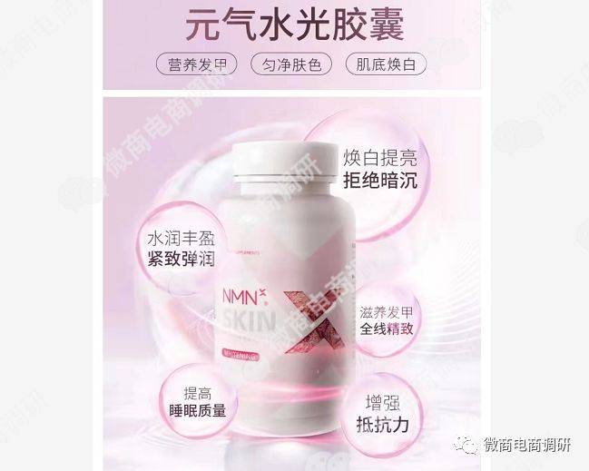 “有助睡眠”的广告语也出现在了关于其他NMN产品的包装上,比如“SKIN FLAWLESS 无瑕美肤缓释植物胶囊”和“UNDENIABLE BEAUTY 不争之美缓释植物胶囊”。