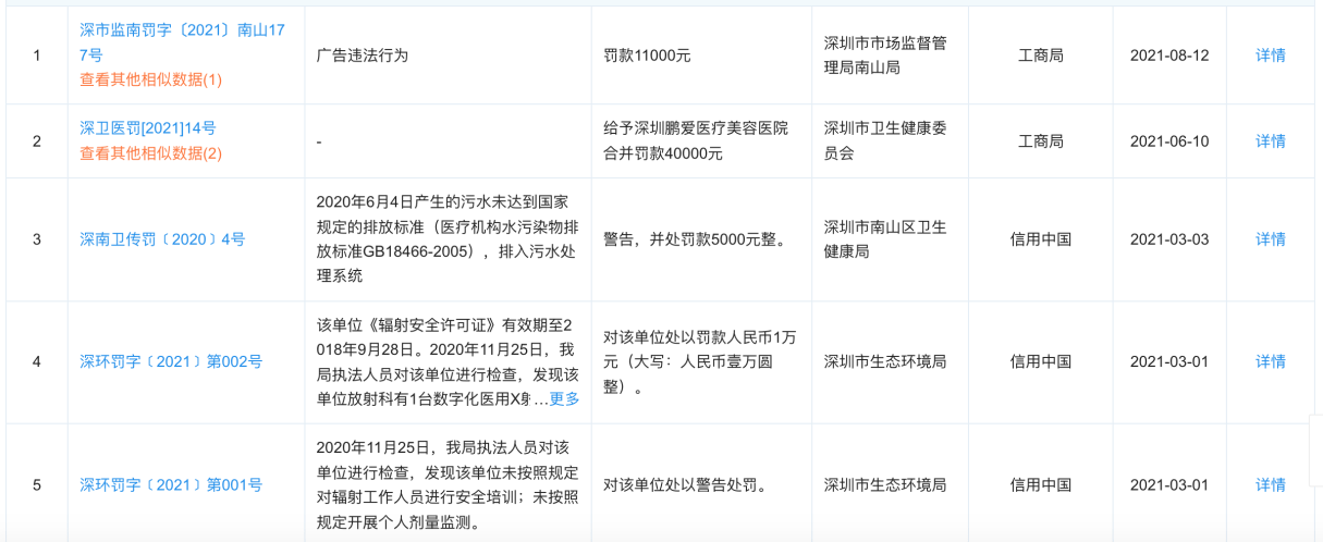 曾因使用不合资质的医师并伪造签名被罚,深圳鹏爱4年内13条行政处罚记录