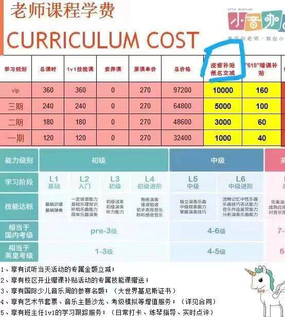 也就是说,小音咖部分课程为“赔钱买卖”。“很多兼职老师的课时费都是公司补贴的,例如收用户200元,和老师结算250元。”6月26日,一名小音咖内部人士向时代周报记者表示。
