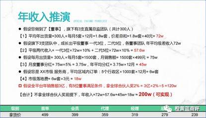 日假设全平台年销售额3亿,有5位董事满足条件,拿全球合伙人奖2%=3亿x2%÷5=120w