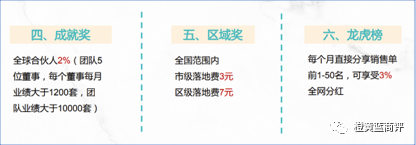 成就奖:要求团队有5位董事,且每位董事每月业绩要大于1200套,团队业绩大于10000套。即可参与全球2%的分红。