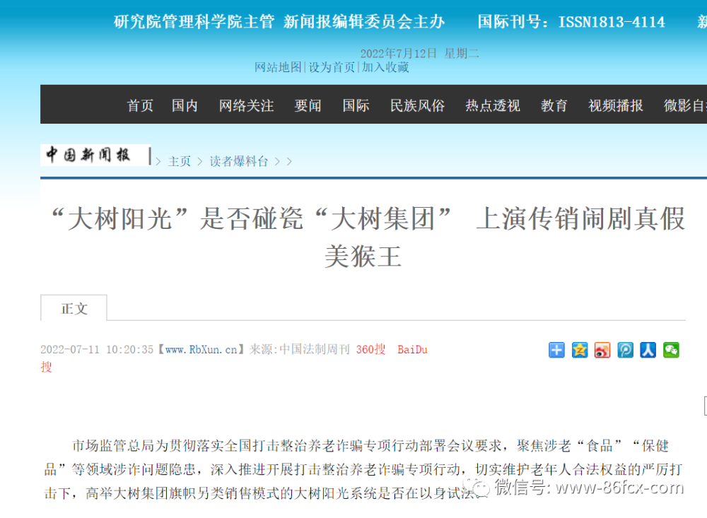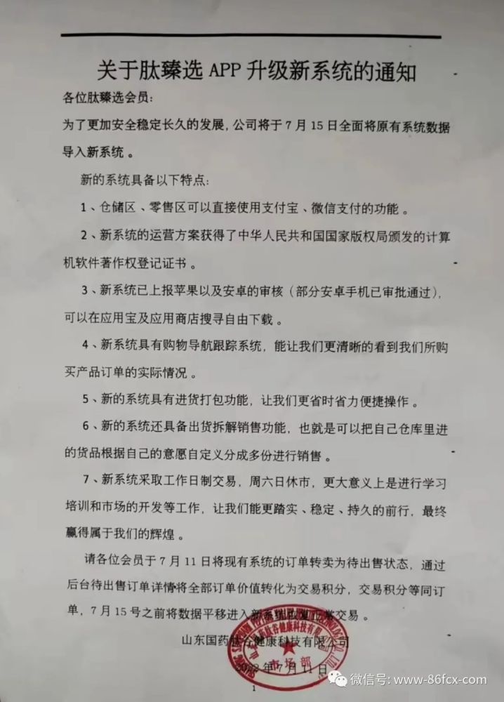 对于“肽臻选”的《通知》盖“山东国药肽谷健康科技有限公司 市场部”的章,“大树集团”回应说,“‘国药肽谷公司’没有‘平台’,只能是原来授权过一个代理商卖产品,这个公司根本就没有市场部,并且椭圆的章随便刻,不受法律保护,圆形的章是受法律保护的,我们也已经报案了……”。也就是说,按照“大树集团”解释是,“国药肽谷”的一个代理商,冒用“大树集团”旗号搞的“肽臻选”等平台。而“肽臻选”的会员收到的产品,却又是“大树集团”生产的,这很让会员们很迷惑。按照“大树集团”的解释,是否可以这么理解,是跟“大树集团”没有关系的“国药肽谷”的代理商,做的“肽臻选”平台,“肽臻选”平台卖的产品却是“大树集团”生产的。