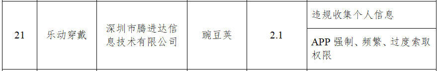 由深圳市腾进达信息技术有限公司开发的APP 乐动穿戴(版本号:2.1)所涉问题包括:违规收集个人信息;APP强制、频繁、过度索取权限。