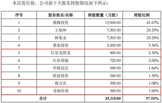 招股书显示,在 慕思 股份的十大股东中,还能看见上述提到的增资活动中多位外部投资者。分别为 红星美凯龙 (1528. HK)、红杉璟瑜、 华联综艺 、 欧派投资 、龙袖咨询。