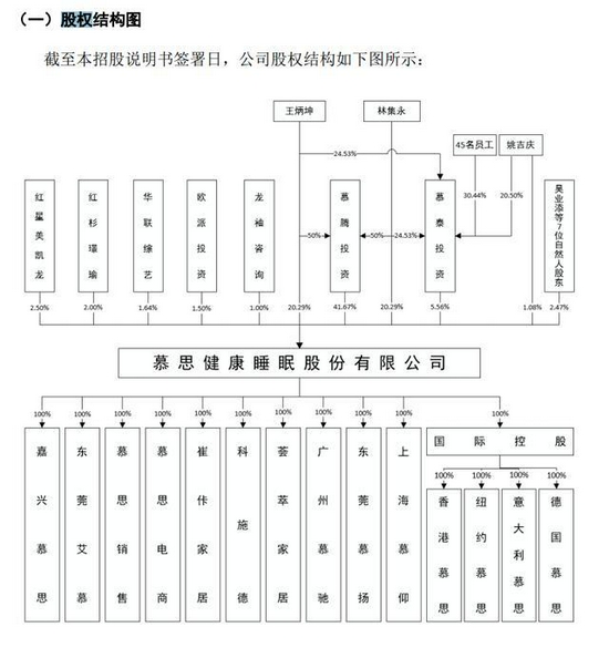 据招股书中的股权结构图显示,慕思股份是一家地道的中国公司。但据媒体近日报道,慕思被指涉嫌“冒充”洋品牌。报道称,早期在广告宣传中,慕思不断强调“法国皇家设计师”“创始于1868年”等。
