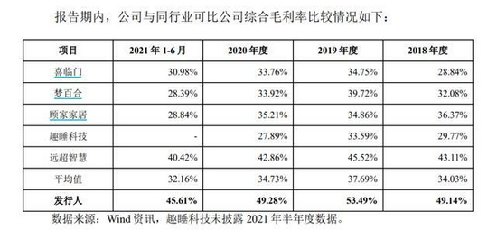 此外, 慕思 股份为了扩大与 欧派家居 的的合作规模,或不惜牺牲自身产品 毛利率 。招股书显示,专供欧派家居渠道的产品毛利率由2019年的37.71%下降至2021年上半年的16.52%。并远低于其他直供客户的产品毛利率。