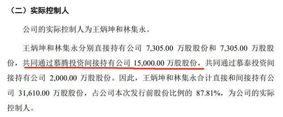 据慕思股份11月12日更新的招股书显示,慕思股份控股股东为慕腾投资,实控人为林集、王炳坤,两人合计直接和间接持有公司31610万股股份,占公司本次发行前股份比例的 87.81%。王炳坤和林集永均为中国国籍,无境外永久居留权。