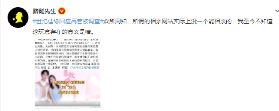 世纪佳缘回应高管被调查上热搜 网友:就是个诈骗公司