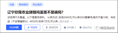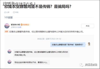 尽管如此,舆情观察网注意到,在网上,有不少网友询问欣隆农业酵醒鸡是否属于传销,而回复者表示确实属于传销,而且是以诈骗为目的的网络诈骗公司。