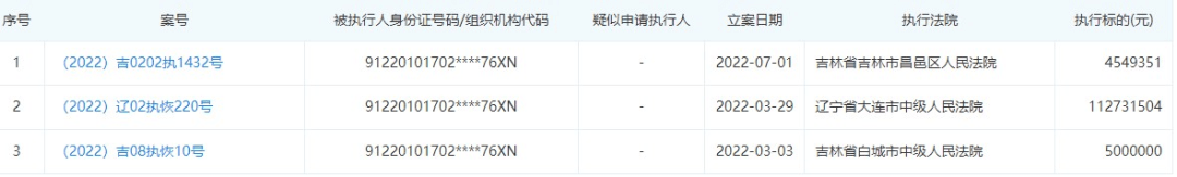 而在此前的今年2月9日,龙翔集团更是被吉林省长春市中级人民法院列为被执行人,执行标的约1499.15万元。该案案号为(2022)吉01执102号,立案日期2022年2月7日。