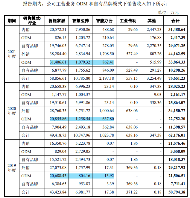 贴牌直销模式为公司作为ODM厂商以直销方式向品牌商进行买断式销售,即公司按照品牌商的定制化需求自行研发、设计和生产相关产品后向其供货,相关产品上以品牌商自有品牌对产品进行标注。而这块业务,在豪江智能的外销占比一路走高。