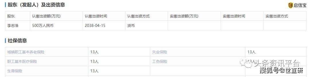 据2019年度报告显示,该公司注册资本为500万元,但认缴出资时间为2038年,参保员工有13人。