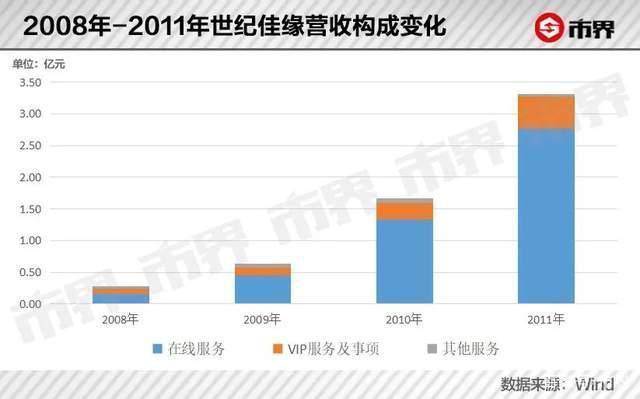 与财富接踵而来的便是来自营收和净利润的压力。从招股书看,世纪佳缘在2008年之前一直亏损,收入分为在线服务,线下活动和VIP服务等,2010年在线服务营收占比约8成,单一的营收来源让投资人心生不满。而公司股价自11美元开盘后,也长期低迷维持在5美元左右。