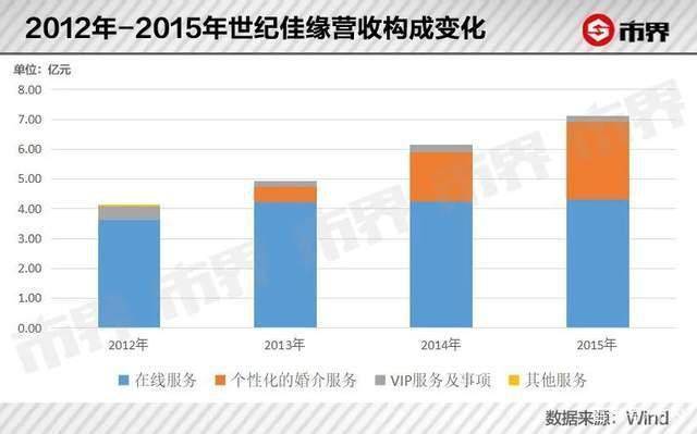反映到财报上,2013年一季度其营收同比增长27.57%至1.115亿元,净利润同比增长51.8%至793.6万元。一对一红娘服务营收占比从2013年的10.65%,提升至2015年的36.64%。