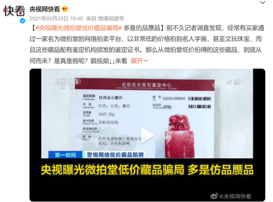 虽然已经是线上文玩赛道的头部玩家,但微拍堂的名声一直伴随着假货、套路。不管是消费者还是商家,都对微拍堂怨声载道。甚至就连央视新闻都曝光过微拍堂的假货事件。