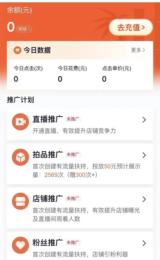 微拍堂的青竹推广主要分为直播推广、店铺推广、商品推广和粉丝推广,虽然项目不同,但逻辑基本一致,并且每次费用都不低于数百元,且不保证成交率和成交金额。