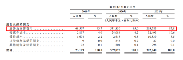 尤其是2020年,微拍堂的销售及经销开支达到5.6亿,其中,广告宣传费用达到5.3亿,这也直接影响了当期的利润。2021年,微拍堂的广告费降至2.6亿,因此全年利润又出现大幅回暖。