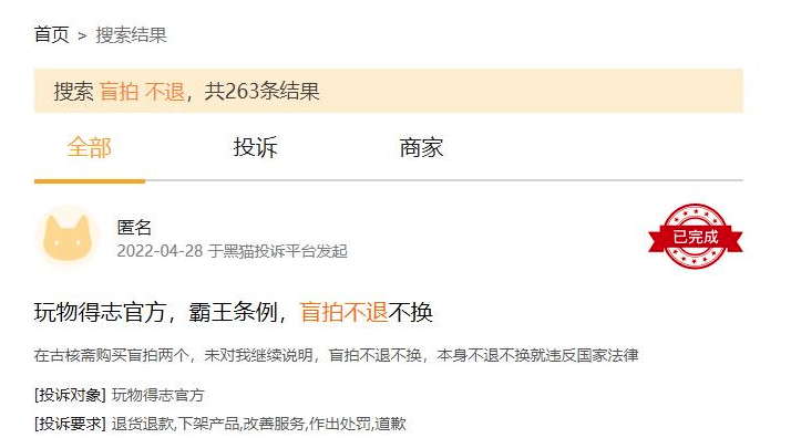 《中国消费者报》调查发现,此类投诉并非少数,在黑猫投诉平台上搜索关键词“微拍堂+盲拍不退”,结果显示有26条相关投诉,反映的几乎都是消费者通过微拍堂平台盲拍的商品不能退货的问题,涉及金额从几百元到数万元不等。《中国消费者报》还在该平台搜索关键词“盲拍+不退”,结果显示有263条相关投诉,反映的大多数也是同类问题,且投诉对象大多数为微拍堂、玩物得志等文玩直播竞拍平台。