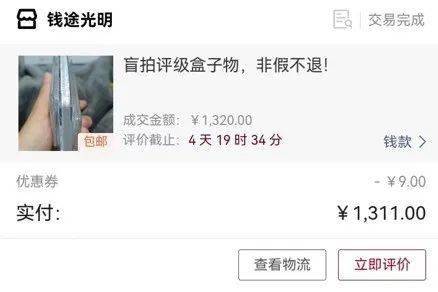 5月28日,上海市消费者邓先生通过微拍堂平台参与了“钱途光明”店铺的一场直播盲拍活动,花费1311元竞拍到了一款名为“盲拍评级盒子物”的商品。