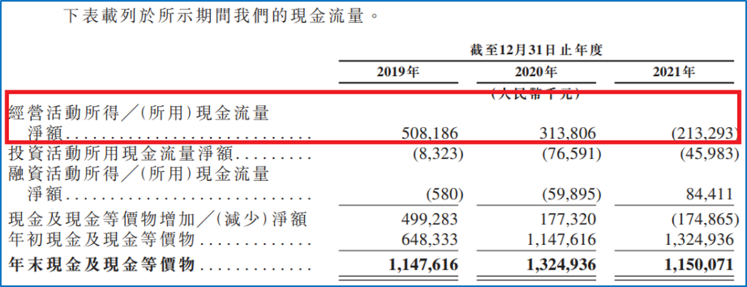 招股书显示,和大幅增长的营收相矛盾的是,过去三年,微拍堂的经营现金流逐步恶化。2019年-2021年,微拍堂经营活动产生的现金流量净额分别为5.08亿元、3.14亿元和-2.13亿元。